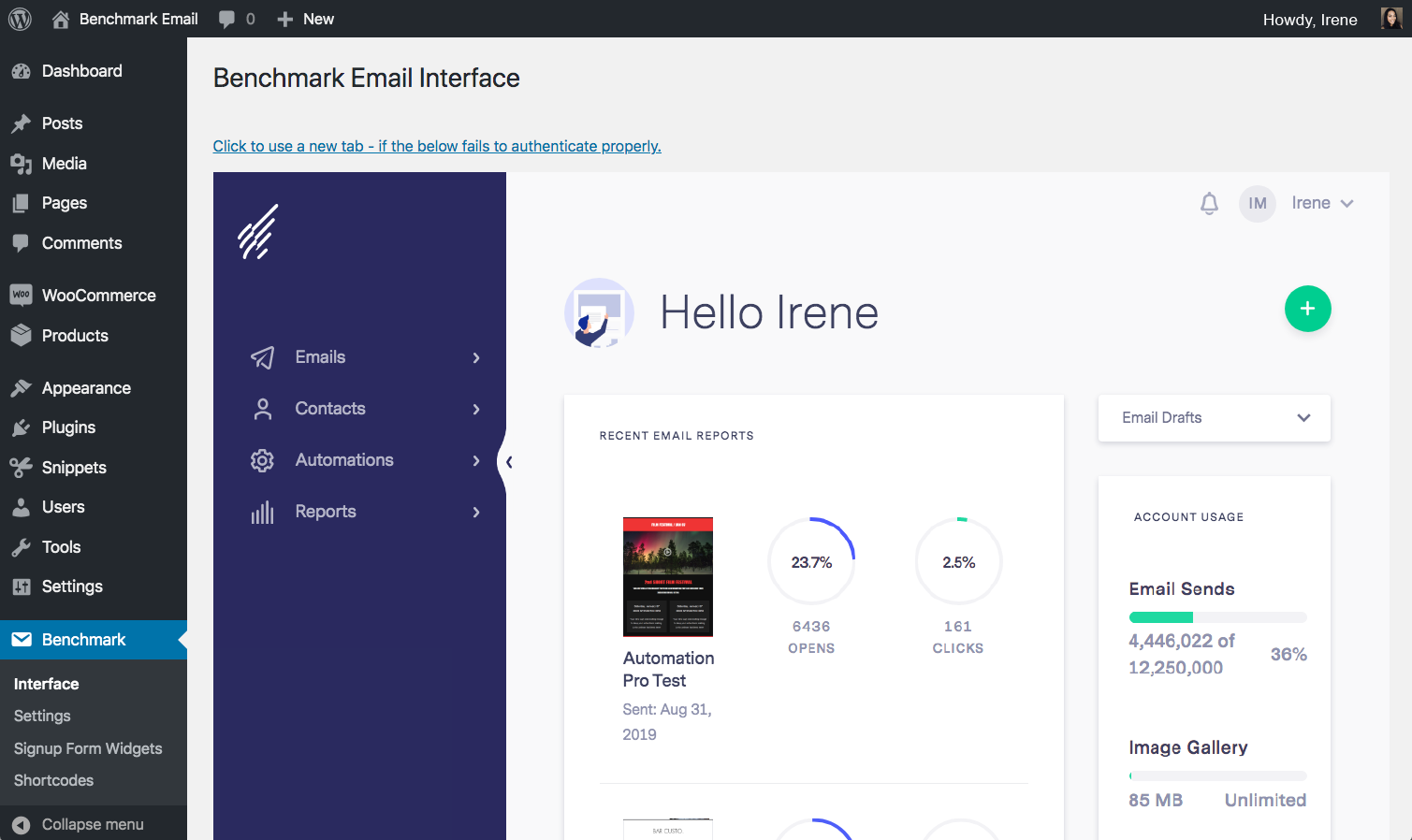 • Control up to 5 separate Benchmark Email accounts from your WordPress site
