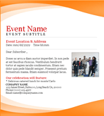 An email event invite has to do two things: generate interest and convince the recipient that they've got something to leave the house for. The second part's up to you, but leave the first to us. Our email event invite templates, themed for business, casual and personal events, give you the extra edge you need to get people in the door.