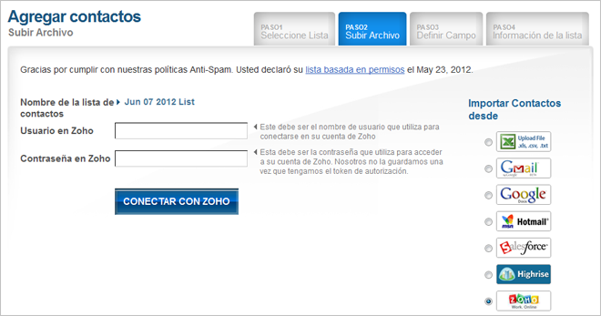Importa los contactos de Zoho a tu cuenta de Benchmark Email y optimiza tu estrategia de email marketing. Los contactos son importados a la lista que hayas seleccionado y pueden configurarse fácilmente en el panel. Disponible de forma gratuita con cada cuenta de Benchmark Email.