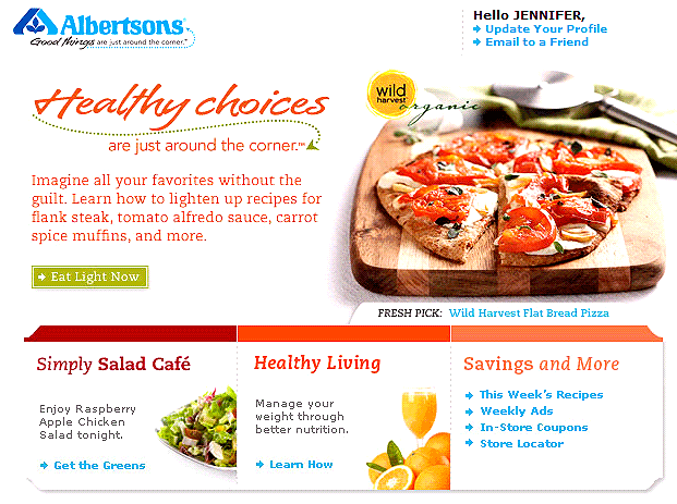 Ejemplo: Este es un mensaje acerca de la comida, pero Albertsons sólo elige unas imágenes sólidas para obtener su punto a través de estas.
