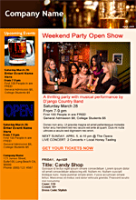 Band managers, play directors and comedians rejoice: no more hunting around for the right HTML template. Pop into Benchmark's pre-made template gallery and you'll find the right template for whatever act or event you're promoting.