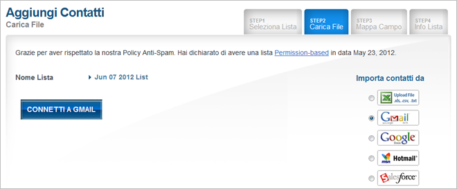 Importa i tuoi contatti Gmail nel tuo account Benchmark Email con questa integrazione sicura. I contatti manterranno le impostazioni di gruppo presenti in Gmail con i campi che potrai specificare durante il processo. Puoi connettere il tuo account Gmail sia nella sezione Liste del tuo dashboard che nelle impostazioni Account. E’ un processo veloce e sicuro che può essere attivato o disattivato in qualsiasi momento.