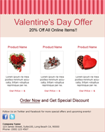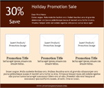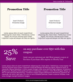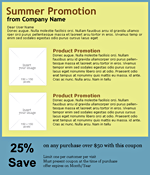 La promozione non è solo un'offerta fatta al cliente. E'un delicato equilibrio fra un grande design e un argomento veramente interessante per il cliente. I nostri modelli per promozioni via mail offrono la possibilità di mettere meglio in evidenza il contenuto predisponendo il cliente ad accettare l'offerta.Offri un prodotto, servizio o evento speciale. Utilizza immagini, testi, loghi e altri elementi. Se hai bisogno di aiuto, visita il nostro Centro Risorse. Ma nel frattempo, sfoglia la nostra galleria per trovare un modello di e-mail per promozione che colpisca la tua fantasia.