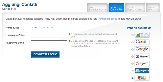 Importa i tuoi contatti Zoho nel tuo account Benchmark Email e ottimizza i tuoi rapporti con l'email marketing. I contatti sono importati nelle liste che desideri e possono essere gestiti facilmente nel pannello di Benchmark. Gratis con qualsiasi account di Benchmark.