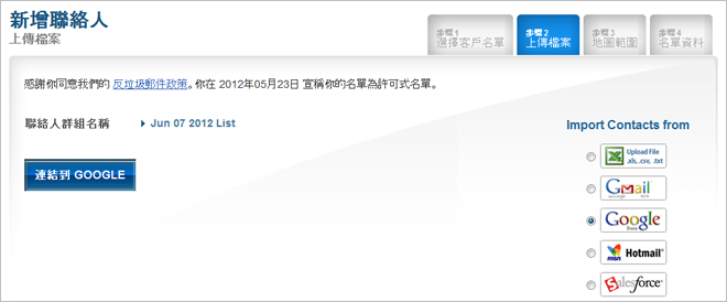 將 Google 資料輸入 Benchmark Email 帳戶